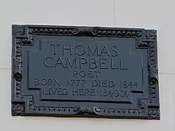 - Poet Thomas Campbell (1777–1844) from 1840 to 1844 – at No. 16.