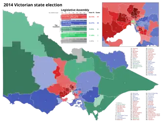 A redistribution of Victoria's state electoral boundaries took place from 2012 to 2013. The final boundaries were gazetted on 17 October 2013 and were used for the 2014 state election.[20]