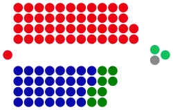 The government operated with a two-seat margin in the 40-member upper house where all members are up for re-election every term, with 21 Coalition, 16 Labor and 3 Greens members.[8][9]