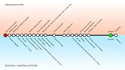 Video design or projection design is a creative field of stagecraft. It is concerned with the creation and integration of film, motion graphics and live camera feed into the fields of theatre, opera, dance, fashion shows, concerts and other live events. Video design has only recently gained recognition as a separate creative field becoming an integral tool for engagement and learning while spanning its influence to different realms of intellects such as education. A review conducted by 113 peers between 1992 and 2021 revealed a marked increase in research on video design principles, particularly after 2008. This surge correlates with the proliferation of platforms like YouTube, which have popularized video-based learning.[1] The United Scenic Artists' Local 829, a union representing designers and scenic artists in the US entertainment industry, added the Global Projection Designer membership category in 2007.[2] Prior to this, the responsibilities of video design would often be taken on by a scenic designer or lighting designer. A person who practices the art of video design is often known as a Video Designer. However, naming conventions vary worldwide, so practitioners may also be credited as Projection Designer, "Media Designer", Cinematographer or Video Director (amongst others). As a relatively new field of stagecraft, practitioners create their own definitions, rules and techniques.[3]
