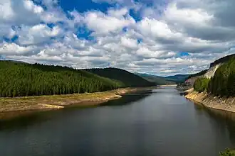 Vidra Lake is a storage reservoir, located in the Parâng Mountains group, on the Lotru River, in Vâlcea County, in south-central Romania.