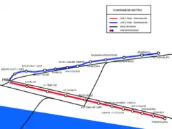 Vijayawada Metro is a planned rapid transit system for the city of Vijayawada, located in the state of Andhra Pradesh, India. The approved DPR consists of 3 lines with a total length of 74.2 kilometres.[1][2]