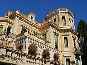 The villa, designed by architect Pio Soli, was built in 1893.[1] The property belonged for some time to a British antique collector, and was later purchased in 1918 by Count Paolo Ruggeri Laderchi,[2] who, during the 1930s, organized frequent receptions there, hosting the most prominent personalities visiting Sanremo.[1] The villa remained his property until his death in 1940.[2]