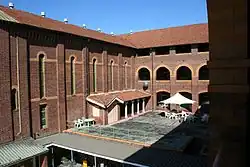 The north courtyard is an open space with some moveable tables, chairs and umbrellas. The south courtyard accommodates recent raised garden beds and a shade structure. A number of recent extensions and a freestanding rectangular building, none of which are considered to be of cultural heritage significance, intrude into the courtyard space and along the northeast side of the chapel.[1]