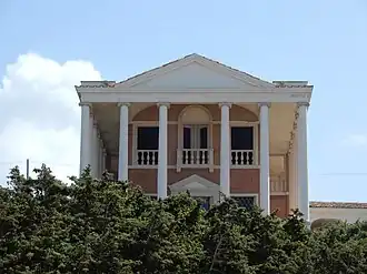 The villa, which is located within the boundaries of Circeo National Park, lies on a sand dune facing the Tyrrhenian Sea. Featuring a neoclassical and neo-Palladian style, it is composed by a central volume and two side wings. The central part of the villa resembles a classical Roman temple.[2]