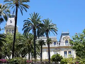 The villa, which features an eclectic style, has a mansard roof.[1]