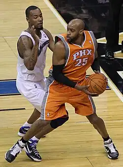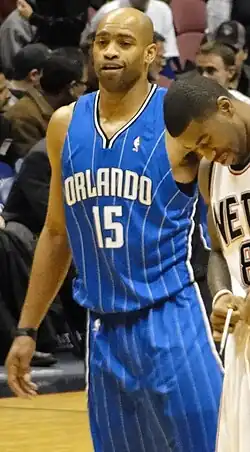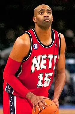 Vincent Lamar Carter Jr. (born January 26, 1977) is an American former professional basketball player who played for 22 seasons in the National Basketball Association (NBA). He primarily played the shooting guard and small forward positions, but occasionally played power forward later in his NBA career. An eight-time All-Star and a two-time All-NBA Team selection, he played a record 22 seasons in the NBA, tied with LeBron James for the most seasons played in league history.[1] He is also the only player to have played in the NBA in four different decades.[2][3] In 2024, Carter was inducted into the Naismith Memorial Basketball Hall of Fame.[4]