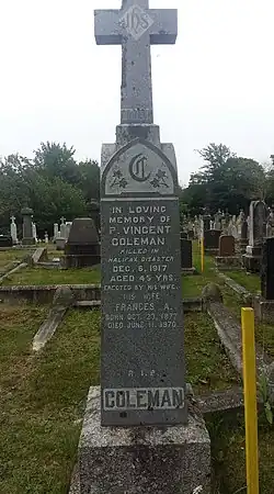 Coleman is buried at Mount Olivet Cemetery in Halifax, at the intersection of Mumford Road with Joseph Howe Drive. A street is named after him in the Clayton Park neighbourhood of Halifax, and in 2007 a section of Albert Street near his old home was renamed Vincent Street. A condominium near Mount Olivet Cemetery on Bayer's Road is named The Vincent Coleman, also in his honour.[10]
