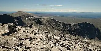 ![]() Vinjeronden (image center) seen from the higher Rondeslottet. Storronden behind to the left. | |