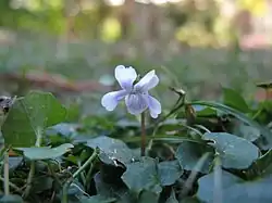 The flowers are usually rather pale and washed-out looking, the anterior petal (the one at the bottom of the flower when looking face on) is widest towards its apex, and the mature seeds are brown. Well-developed leaves of Viola hederacea are also distinctive โ semicircular in outline, about as broad as long, and usually rather dark green above and paler beneath.