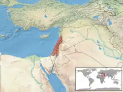 It is found in northern and central Israel, Palestine, western Syria, northwestern Jordan, and Lebanon.[2][5][6] In 2017 a specimen was found in Turkey.[11] Mallow et al. (2003) describe the range as relatively restricted, with the distribution being concentrated in the Mediterranean coastal plains to the inland hills of Lebanon and Israel, along with the adjoining regions of Syria and Jordan.[3]