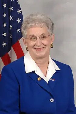 Virginia Ann Foxx (née Palmieri;[1][2] born June 29, 1943) is an American politician, businesswoman, and educator serving as the U.S. representative for North Carolina's 5th congressional district since 2005. A member of the Republican Party, Foxx has served as chair of the House Rules Committee since 2025 and is the only woman leading a committee in the 119th Congress.[3] She also served as Secretary of the House Republican Conference from 2013 to 2017.[4] She was the ranking member of the House Committee on Education and Labor from 2019 to 2023 and served as the committee's chair from 2017 to 2019 and from 2023 to 2025. Foxx's district encompasses much of the rural northwestern portion of the state, including the majority of Greensboro. Since January 2025, Foxx has been the dean of North Carolina's congressional delegation,[5] having previously shared the deanship with Patrick McHenry until his retirement.[6]