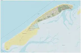 The northern part of the island of Texel, Eierland, once was the southwestern part of Vlieland. A storm surge in 1296 probably separated Eierland from Vlieland.[6] Erosion further diminished the size of Vlieland from the west, leading in 1736 to the disappearance of a second village on Vlieland, West-Vlieland (Westeijnde), after the inhabitants had tried for decades to rebuild the town following numerous floods.