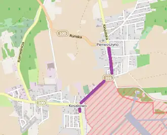 Voivodeship Road 101 (Polish: Droga wojewódzka nr 101, abbreviated DW 101) is a former voivodeship road. It ran through the Pomeranian Voivodeship from voivodeship road 100 in Pierwoszyno to Kosakowo where there is the new international airport.[1] The route was concurrent with voivodeship road 100 on its entire length.