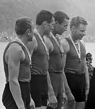 ![]() Zigmas Jukna, Antanas Bagdonavicius, Volodymyr Sterlik and Juozas Jagelavicius – winners of the 1965 European Championships in the coxless fours | ||||||||||||||||||||||||||||||||||||