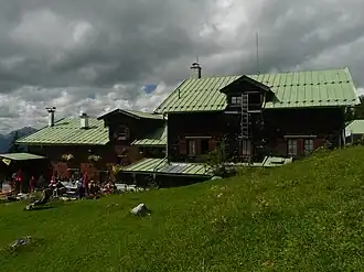 The Vorderkaiserfelden Hut (German: Vorderkaiserfeldenhütte) is an alpine hut in the Kufstein district, Austria. It is located at 1,384 metres (4,541 ft)[1] on the southwest slope of the Zahmer Kaiser below the Naunspitze and high above the Kaisertal valley in the Kaisergebirge mountain range. It has a good view over the Inn valley and Kufstein and across to the Mangfall Mountains and the Wilder Kaiser.