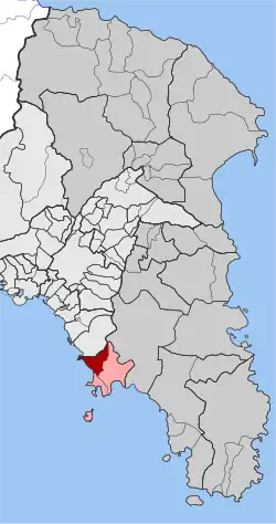 Voula (Greek: Βούλα) is a southern suburb of Athens[2] along the Athens coast and former municipality in East Attica, Greece. Since the 2011 local government reform it is part of the municipality Vari-Voula-Vouliagmeni, of which it is the seat and a municipal unit.[3] The municipal unit has an area of 8.787 km2.[4]