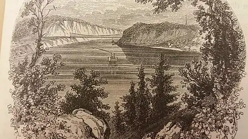 During the Battle of Queenston Heights in the War of 1812, Vrooman's Point was the location of a vital British twenty-four-pounder artillery piece.[2] Despite being near the limits of its range trying to bombard the battle, the piece harassed American troops on the American shore trying to embark their boats for Canada and the battle, as well as providing support for the British recapture of the heights. The cannon was commanded by Captain Samuel Hatt of the Upper Canadian militia and Lieutenant John Ball.[3]