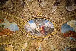 In addition, the fresco interiors of the Sala Terrena that links palace and garden, executed by Václav Vavřinec Reiner, have also survived. Facing the Sala Terrena across a central pool is a matching former aviary.[2]