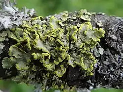 Vulpicida pinastri, the powdered sunshine, is a species of foliose lichen in the family Parmeliaceae. The lichen has a greenish-yellow thallus and dorsiventral lobes. It grows on conifers and Betula in North America and Eurasia. It is the only sorediate species in the genus and is distinguished by the bright-yellow marginal soralia.[1] The lichen, originally described by Italian naturalist Giovanni Antonio Scopoli in 1772,[2] was transferred to the newly circumscribed genus Vulpicida by Jan-Eric Mattson and Ming-Jou Lai in 1993.[3]