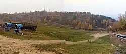 Built in the Soviet Union, in 1993 the luge sports complex closed and about a half year later the track caught on fire.[2] Now the luge track is nonoperational. The sports complex however has a great story as here started out the native of Kyiv Natalya Yakushenko[2] who was an Olympian flagbearer for Ukraine at the 2006 Winter Olympics.