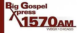 WBGX (1570 AM) is a radio station broadcasting a gospel format. Located in Harvey, Illinois, United States, it serves the Chicago area. The station is owned by Brian Byrnes.[5]