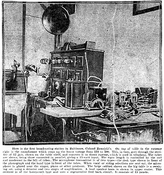 - ^ "Baltimore Does Its Own Radio Broadcasting", Baltimore Sun, April 2, 1922, Part 6, page 3.