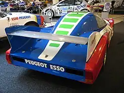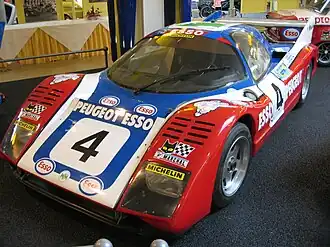The Welter-Meunier P80 is a sports prototype race car, designed, developed and built by French racing team Welter Racing, for sports car racing, specifically the 24 Hours of Le Mans, between 1980 and 1982. It was powered by a twin-turbocharged 2.7 L (160 cu in) Peugeot PRV V6 engine, producing 500 hp (370 kW), which drove the rear wheels through a 5-speed ZF manual transmission. The bodywork is constructed out of Kevlar epoxy and carbon fiber.[1][2]