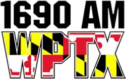 WPTX is Maryland's first and only AM expanded band radio station, having moved to the expanded band from 920 kHz on July 15, 1998. It operates with 10,000 watts daytime and reduces power to 1,000 at night to protect other stations on 1690 AM. Programming is also heard on 250-watt FM translator W264DR at 100.7 MHz in Lexington Park.