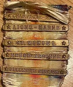 The following battle clasps, inscribed with a battle's name, were worn on the medal to denote participation in major ground conflicts.[1]