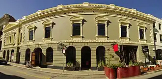 WD Moore & Co Warehouse complex is on Henry Street, Fremantle. It was unified in 1899 behind an ornamental stucco facade.[1] A store was established on the site by Samuel Moore in the 1840s. William Dalgety Moore later established a general merchant business there in 1862. The complex comprises a residence, warehouse, factory stable, offices and shop, built between 1862 and 1899, in addition to a three-storey backstore which was built at an unknown date, possibly as early as 1844.[1] The complex was listed on the Register of the National Estate in 1978.[2]