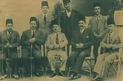 Party leader and Prime minister Mustafa El-Nahas pasha with Secretary-general and Finance minister Makram Ebeid Pasha, and other prominent cabinet and party members during his leadership.