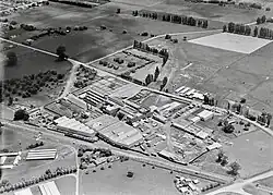 On 1 October 1883 Nelson Brothers Limited freezing works opened,[12] and 9,000 frozen carcasses from Tōmoana left Napier in March 1884 on the sailing ship Turakina. Initially, the plant was designed to kill 400 sheep a day. In 1884 41,000 sheep and 10 bullocks were exported frozen. The freezing capacity at Tōmoana was doubled, and by 1891, all of the original machinery had been scrapped. In 1897 the Works flooded. In 1907 there was a fire in a freezer store. In 1913 Tōmoana cannery closed. By 1917, the daily kill capacity had increased to 4,000 a day, plus 100 cattle. In November 1920 the Vestey Group bought Nelson Brothers and Tōmoana, though still traded as Nelsons. Vesteys opened a 4-storey slaughter house in 1924. The 3 February 1931 earthquake damaged the main block and the freezers, but by 1 June 1931 Tōmoana was back to full capacity. In 1932 new chains improved efficiency, but caused a long strike. From 1933 Tōmoana produced its own casks and barrels and boxes from 1939. A 1941 fire destroyed a cold store. From 1958 tallow was put in 44 gallon drums and from 1962 carboard cartons replaced boxes. On 17 September 1979 a fire stopped much production until late 1980. In late 1985 Nelsons New Zealand Limited became a wholly owned subsidiary of Weddel-Crown Corporation Limited, owned by W & R Fletcher New Zealand Limited and Crown Corporation and took over Whakatu. Vesteys again took over from Crown and the company became Weddel New Zealand Limited, known as Weddel Tōmoana Limited. On 25 August 1994, it became insolvent and Tōmoana was sold to Heinz Wattie.[13] Part of the site became Tōmoana Food Hub, with a warehouse built in 2003 for Heinz Wattie.[14]