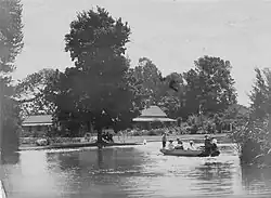 On the south side of the railway, James Nelson Williams sold 200 acres (81 ha) to Robert Wellwood in 1870. He built a house he named Maxwell Lea and started planting English trees. He sold it to William Nelson in 1884. It was renamed Waikoko (calm water) and gardens and a lake were formed.[26] The 10-bedroom house burnt down in 1976, probably due to an electrical fault.[27] A wisteria tree, which formerly covered the house, survived the fire.[28][29]