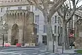 The only surviving piece of the 13th century fortifications is a small fragment of the outer wall at the junction of rue Joseph-Vernet with rue Saint-Charles.[14] Much of the path of the double defence is preserved in the city plan as modern streets follow what was once the gap between the two city walls. Working clockwise from the northeast the walls followed the rue des Trois-Colombes, the rue Campane, the rue Paul-Saïn, the rue Philonarde, the rue des Lices, the rue Henri-Farbe, the rue Joseph-Vernet and the rue Grande-Fusterie.[10] The path of early walls in northwest corner of the town near the Pont Saint-Bénézet is obscure due to the subsequent changes to the fortifications in this important area.[15]