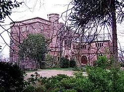 The house was built by the Chester architect John Douglas for his own use. It was built in the 1890s and, although bearing the date 1896, its service wing was never completed. Because of its large size and prominent position it was popularly known as "Douglas' Castle" or "Douglas' Folly".[3] Douglas lived in the house from about 1901 until his death in 1911. Following this, his son Sholto continued to live in there but had left it by 1918. It became a girls' school, Walmoor College. A 1935 publication shows it as Hampton House School, Walmoor Hill, a boarding and day school for boys under the headmastership of a D.P. Saunders-Griffiths, M.A. (Oxon.). It was later the headquarters of the Cheshire Fire Brigade.[4] Its use by the fire service ended in 1997.[5]