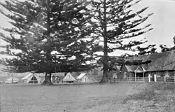The school was able to expand considerably in 1916, and built hangars by the beach for launching flying boats. The Walsh brothers and their sisters lived in the 'captain's house' at the eastern end of the bay, and students lived in tents and later wooden huts.[1]