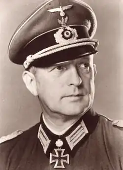 He commanded his new division during the final combats with Red Army in the area of Neulengbach and St. Pölten along the Danube river, before retreated to the town of Steyr in Upper Austria, where he surrendered his command to a United States Army unit on May 8, 1945.[2][7][3][9]