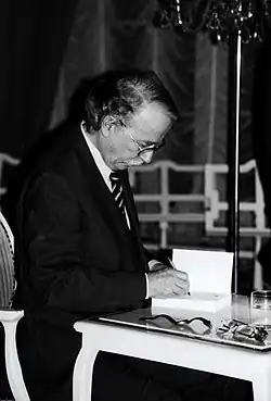 Walter Kempowski (German pronunciation: [ˈvaltɐ kɛmˈpɔfskiː] ⓘ; 29 April 1929 – 5 October 2007[1][2][3]) was a German writer. Kempowski was known for his series of novels called German Chronicle ("Deutsche Chronik") and the monumental Echolot ("Sonar"), a collage of autobiographical reports, letters and other documents by contemporary witnesses of the Second World War.