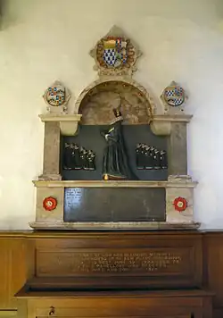 He was born in about 1580, the second son of Sir Benjamin Tichborne, (died 1629), the first Tichborne baronet of Tichborne in Hampshire, and his second wife Amphillis Weston, daughter of Richard Weston, justice of the common pleas. His older brother was Sir Richard Tichborne, the second baronet. The Tichbornes were one of the leading Roman Catholic families in the county. He and his brother married two sisters, the co-heiresses of Sir Robert White of Aldershot, with Walter marrying Mary White (c.1581–1621) on 7 May 1597.[3] According to his wife's memorial monument in St Michael's church in Aldershot (see right) they had seven sons and six daughters:[4] Benjamin, Francis, John, Walter, James, Richard and Lionel. Their daughters were Theophila, Frances, Marie, Elisabeth, Charity and Bridget.