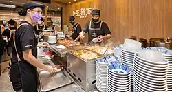 Wang's Broth is a restaurant at Snake Alley (or Huaxi Street Night Market) in Taipei, Taiwan. It has received Bib Gourmand status in the Michelin Guide. The menu includes Ló͘-bah-pn̄g (braised pork rice,[1] or minced pork and pickled cucumber in broth), as well as rice and "black gold" pork sauce.[2][3]