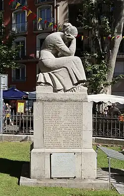 The War memorial of Céret is a World War I memorial in France, located in Céret (Pyrénées-Orientales). The memorial is made of light gray sandstone and consists of a symbolic figure of a mourning woman seated on top of an inscribed base. The figure was sculpted by Aristide Maillol, who worked on it from 1919 to 1920. The memorial was inaugurated in 1922, and it was declared a national monument in 1994.[1]