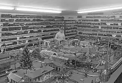 Kimball donated his 3 ft (914 mm) narrow-gauge collection to the Southern California Railway Museum (formerly the Orange Empire Railway Museum) in Perris, California. A full-size steam locomotive, which Kimball ran on his private 3-acre (1.2 ha) backyard railroad known as Grizzly Flats Railroad in San Gabriel, California, bears some of his original artwork on the headlamp and cab, and is on permanent display at the museum.[21][22] Kimball's roundhouse also included two small steam engines that had been used on sugar cane plantations, one of which was his and the other was owned by his friend, noted railroad historian Gerald M. Best.[23][24] In recognition of his love of railroading and support of the Southern California Railway Museum, the Perris Transit Center, where the museum's historic trains travel, is dedicated to Mr. Kimball. In a rare deviation from its usually tight copyright policy, the Disney corporation allowed the city to decorate the transit center with Kimball's artwork. The center is currently served by Riverside Transit Agency buses, with train service as part of the Metrolink 91/Perris Valley Line.[25]