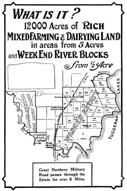 Warnervale railway station was opened in 1907.[10] Warnervale was gazetted as a village in 1975,[11] and the suburb boundaries were defined in 1991.[12] In 1998, the suburb was divided, creating Halloran, Wallarah, Woongarrah and Hamlyn Terrace.[13]