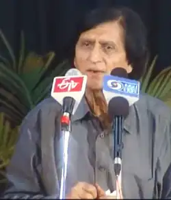 Zahid Hussain (born 18 February 1940), better known by the pen name Wasim Barelvi, is an Indian Urdu-language poet.[1] He was born in Bareilly, Uttar Pradesh.[2][3][4][5] His ghazals, many sung by Jagjit Singh, are very popular.[6][7][8] He has been awarded with the "Firaq Gorakhpuri International Award",[9][10] the Kalidas gold medal (by the Haryana government, in recognition for his services in the field of Urdu and Hindi poetry);[11] the Begum Akhtar Kala Dharmi award;[11] and the Naseem-e-Urdu award.[2] Barelvi is Vice-Chairman of the National Council for Promotion of Urdu Language (NCPUL).