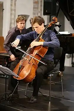 He plays a violoncello by Georges Chanot, made in Paris around 1840. The instrument is a loan by the Deutsche Stiftung Musikleben.