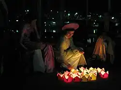 As early as in the Tang dynasty, the water lantern has been used in traditional Chinese festivals such as the Lantern Festival,[1] Mid-Autumn Festival, Chinese New Year, and even Christmas in some places like Hong Kong. It has many different names, depending on the water body on which the lanterns are released, such as 水燈 (water lantern), 流燈 (floating lantern), 河灯, 江燈 (river lantern), 湖燈 (lake lantern), 水燈頭 (water lamphead), and 照冥 (illumination). The shape of the lanterns may be square or in the form of a lotus flower.