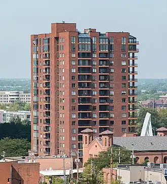 Waterford Tower is a 19-story high-rise building in Downtown Columbus, Ohio. The building was constructed in 1988, near the historical site of the junction of the Columbus Feeder Canal and Scioto River.[1] The city's mayor at the time, Buck Rinehart, considered the project the "boldest" housing development ever built in Downtown Columbus, and that it would help the rebirth of the city's center.[2] The work was one of the first projects in the downtown housing market after years without development, and the first high-rise, high-density residential building built downtown in 15 years.[3][4]