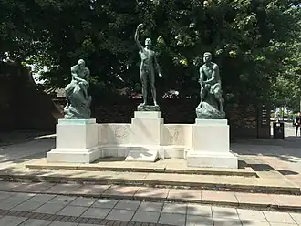 Watford Peace Memorial is a war memorial now located outside the Town Hall in Watford, Hertfordshire, England. It comprises three bronze sculptures of nude males on a white Portland stone base. The sculptor was Mary Pownall Bromet, a student of Auguste Rodin: it is her only war memorial, and a rare example of a war memorial by a woman. It is also an unusual example of a war memorial that incorporates nude sculptures.
