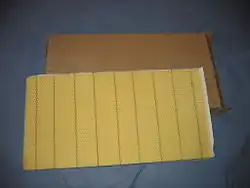 Wax foundation or honeycomb base is a plate made of wax forming the base of one honeycomb. It is used in beekeeping to give the bees a foundation on which they can build the honeycomb.[1] Wax foundation is considered one of the most important inventions in modern beekeeping.[1]